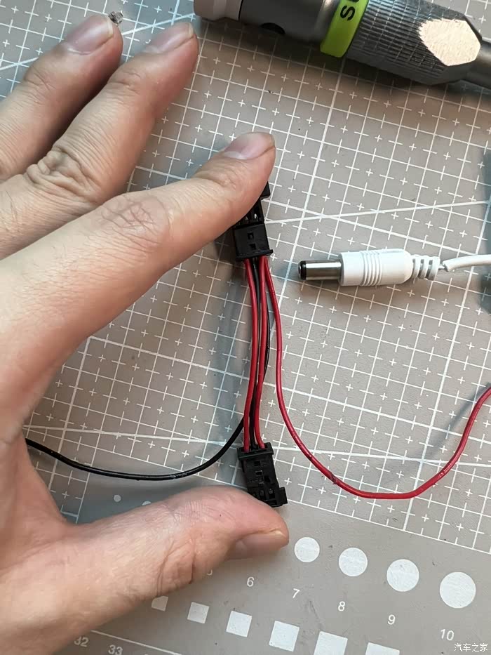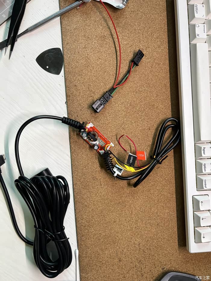 输出端沿用了自带的线,裁的长度刚好到行车记录仪。