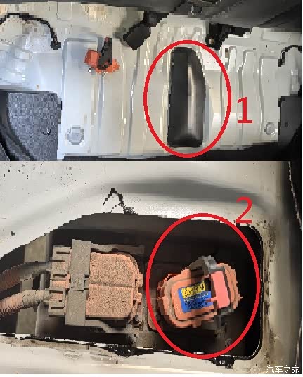 起,是用胶粘的,然后看到两个接口,小的那个是整车连接动力电池的保险,把