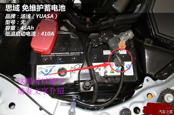 首先这个是原装电瓶的模样,汤浅的,容量为45AH,低温启动电流:410A
