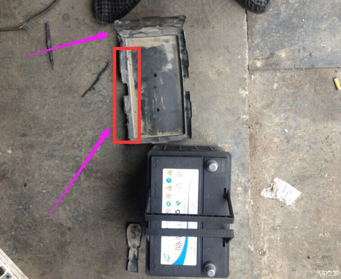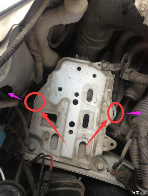 如图所示:请把红圈那2个电瓶固定位置用老虎钳夹住往紫色方向扳一点,这是让加大后的60AH的固定杆可以固定住电瓶!