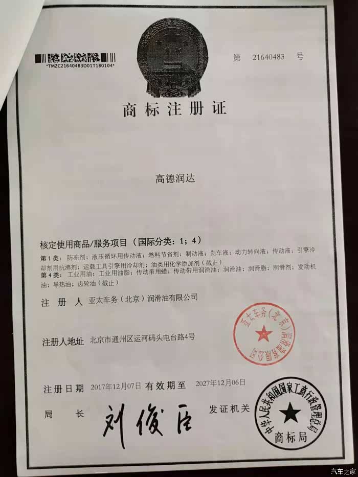 其次针对各位老板提出的质疑,关于工商层面的质疑,本人已经解释很多次了,每次有人开贴我定会仔细观察针对质疑一一解释清楚,高德润达润滑油有限公司也好,高德润通(河北)润滑科技有限公司也罢,只是工商层面以及市场业务的分支公司,只是属于我们亚太车务总公司内部运营的一种方式,注销了最大的原因就是生产型企业必须账面要有实际资产(资金,原材料)以及固定资产(地,房),这也就是为什么现在很多品牌都是代工贴牌,首先生产型营业执照很难拿下来,其次就是税务局针对生产型企业纳税很严苛,所以现在很多品牌并不具备自主生产工厂以及车间设备,都是注册4类商标进行贴牌代工。