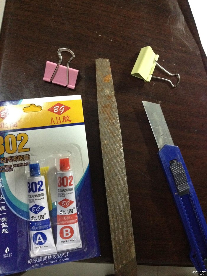 空调出风口坏掉拨齿的地方用平板钢锉锉出1厘米长的缺口,深度控制在能放下备好的钢丝为准