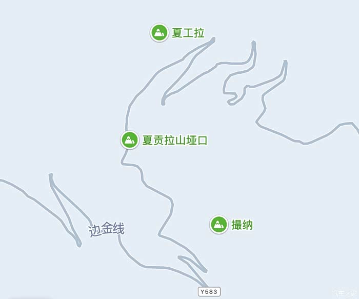 以前的老国道是绕夏贡拉山垭口,后来修建了隧道,名字叫夏贡拉山隧道。隧道很长,出来之后进入山区,再盘山绕几圈就到河谷了。