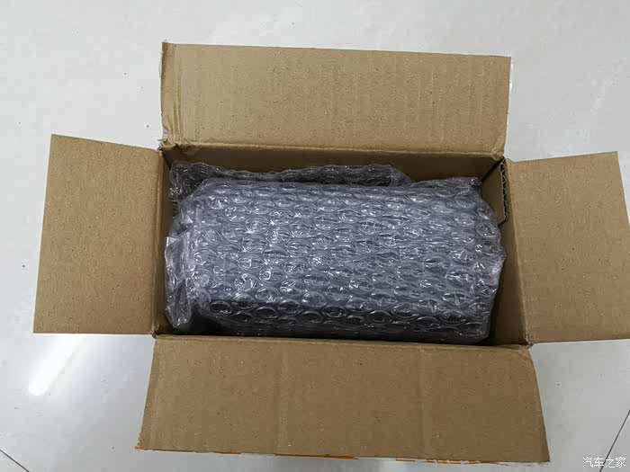 快递箱里面一层气泡塑料纸包裹着行车记录仪。