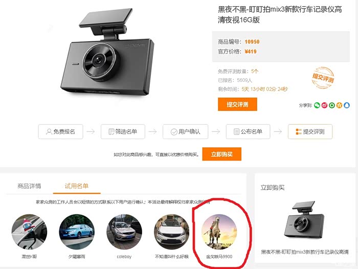 近期,家家众测网站推出黑夜不黑-盯盯拍mix3新款行车记录仪高清夜视16G版,果断申请众测。感觉真是太幸运了。