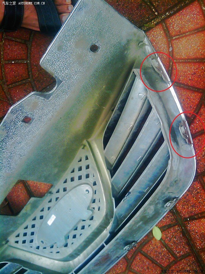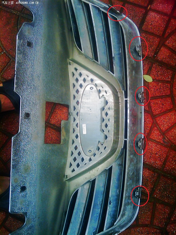 前两天从“济南车饰城”那儿买了水箱散热器护网,今天天气还不错,不下雨了,也不热,就拿了工具拆鬼脸,因为在坛子里没见到DVVT的车主装过,还真不知道怎么拆,先把上面的几个塑料钉子拿下来,就顺着缝找,功夫不负有心人啊,果然就只有几个卡子,先从左边下手,左边两个卡子,下边四个卡子,右边两个卡子,好在我的手小能伸进去按下,另一个稍用边一拽就下来了,之后就好办了
