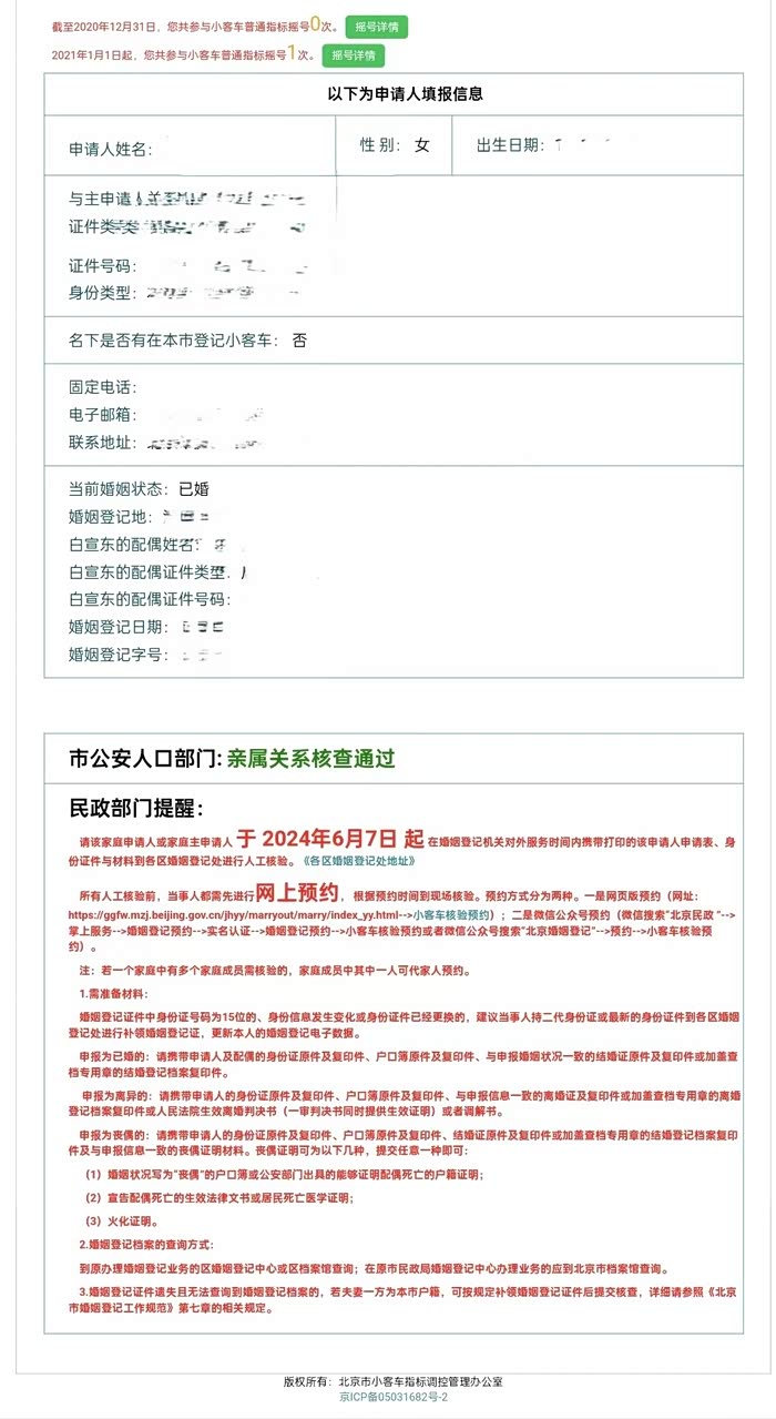 交通委的公告通知6月7日进行婚姻关系审核通知,6月12日公布亲属关系审核结果。如果和我一样,父母的结婚证(或者自己的)是在老家领的或者是2004年之前领的,就肯定会让现场审核,哪怕是在一个户口本上也没用……