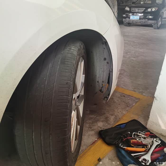 磨损过以损坏的翼子板内衬 轮罩护板螺丝以拆掉