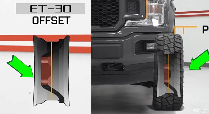 相信很多朋友对于ET值的表述已经非常清楚,我在这里就不再多说,轮毂上的ET数值实际是以毫米作为计算单位,以ET值30的轮毂为例:它的安装盘位置就是以轮毂的中线为基准向轮毂外侧偏移30毫米;如果是ET-30就是安装盘向内侧偏移30毫米,也就是说更换越小ET值的轮毂,轮毂位置越往向外移。