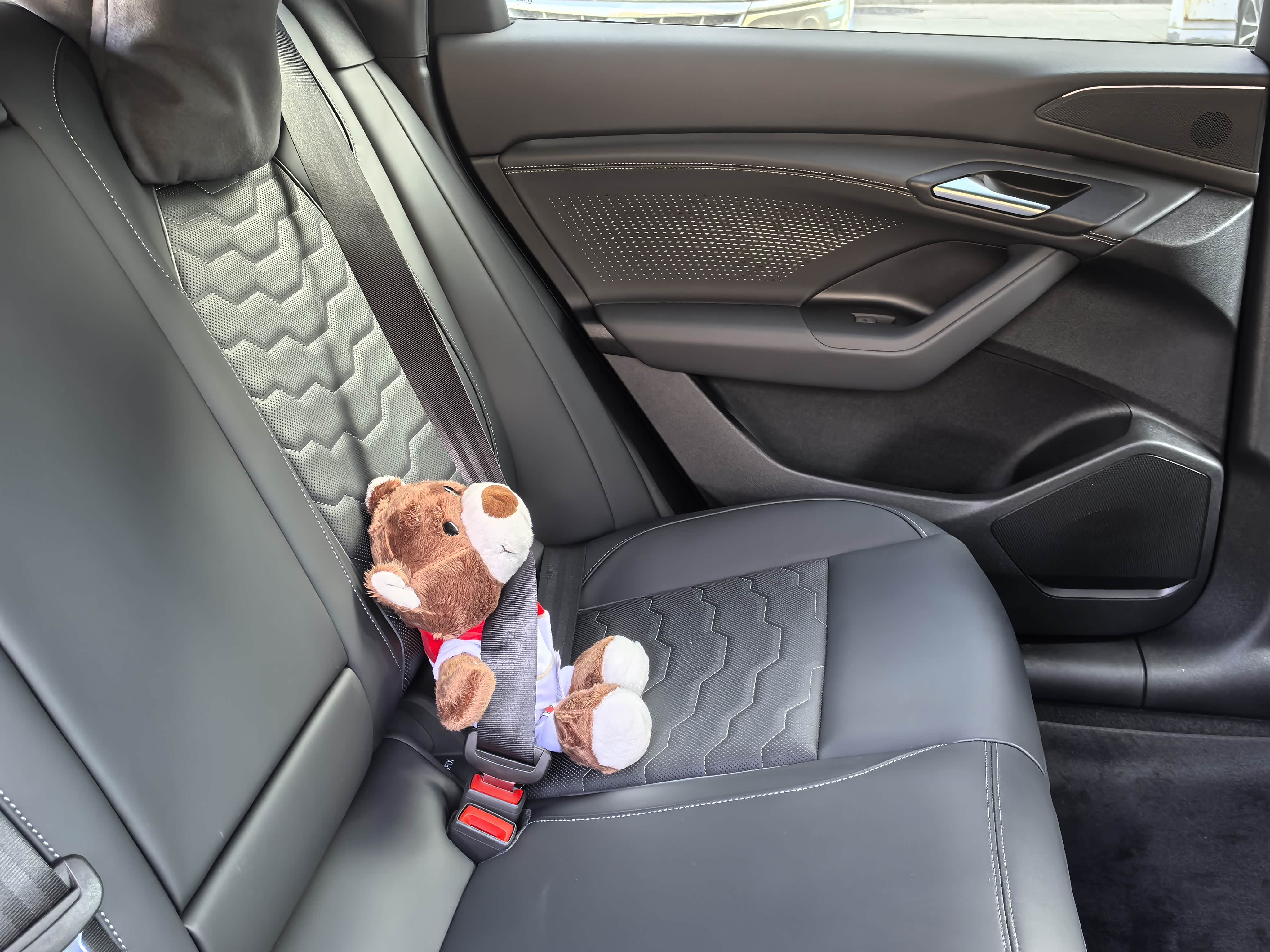 乘坐空间,在选车的时候,就是一家三口用,五座车肯定够用,看了几个品牌,觉得Q6L实际的乘坐空间最好,但唯一不足的是后排座椅调不了,希望奥迪品牌能提升一下,有个电动调节的后排座椅就好了,天窗挺好的,不喜欢大天幕,感觉天窗有遮阳帘更有安全感,后排也采用了隐私玻璃,隔热降噪确实不错,孩子坐在后排,也说这个是试驾过程中,唯一不晕车的,所以更要买它,但是孩子在后排说你好奥迪,竟然用不了,销售说只能主副驾来使唤,避免小朋友在后面捣乱。