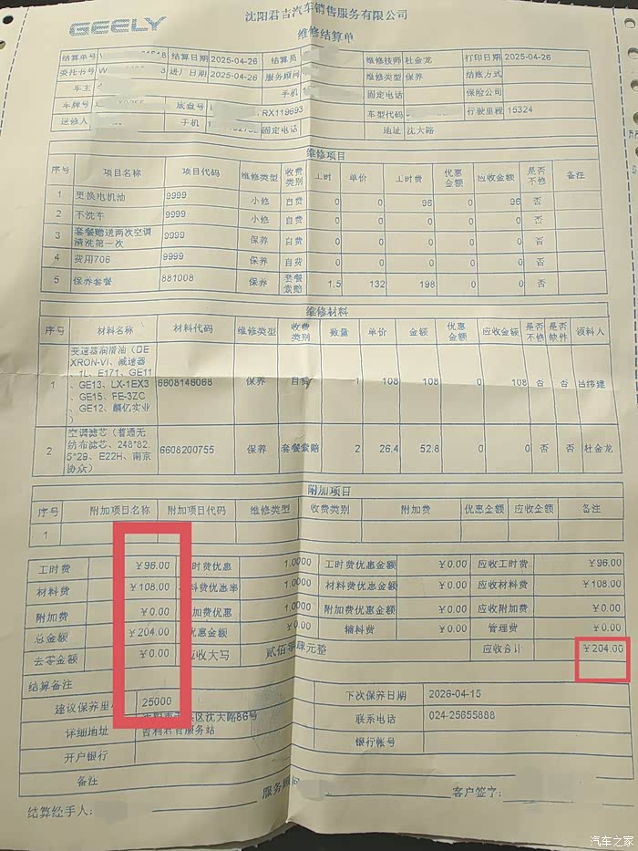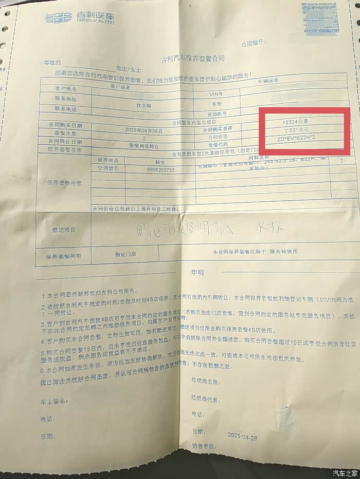 吉利星愿二保价格,第二次15000公里保养价格