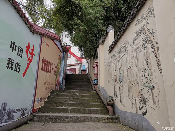 沿着后街走到底再急转而上,便进入了后山区域。到现在,这里也还住着 磁器口古镇的原住民。 重庆生来山多,地形此起彼伏,所以沿着曾经镇子里的巷陌,就能爬到山顶。一路能看到墙上栩栩如生的画,有的展现了过往的 重庆生活,也有像三字经一样的文化读物,栩栩如生。