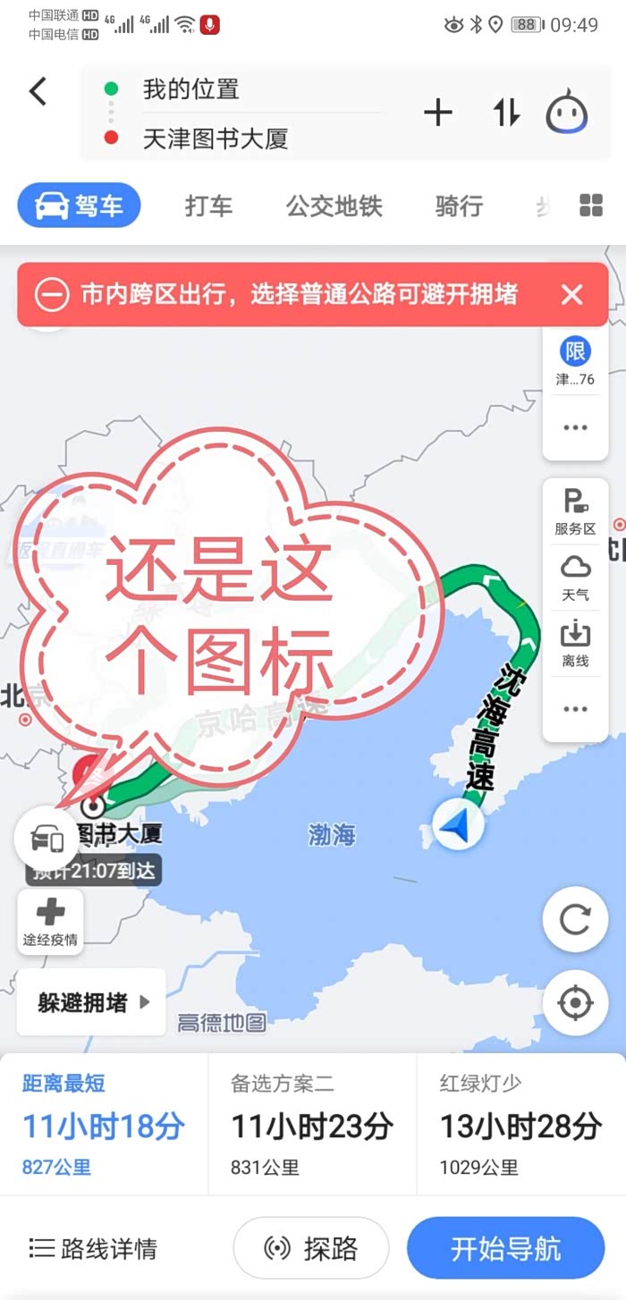 这里要注意,当手机高德搜索完你要去的目的地后,图示就会出现一个图标,这个图标就是下发的按钮。但是这个时候先不要点击,点击下面的路线