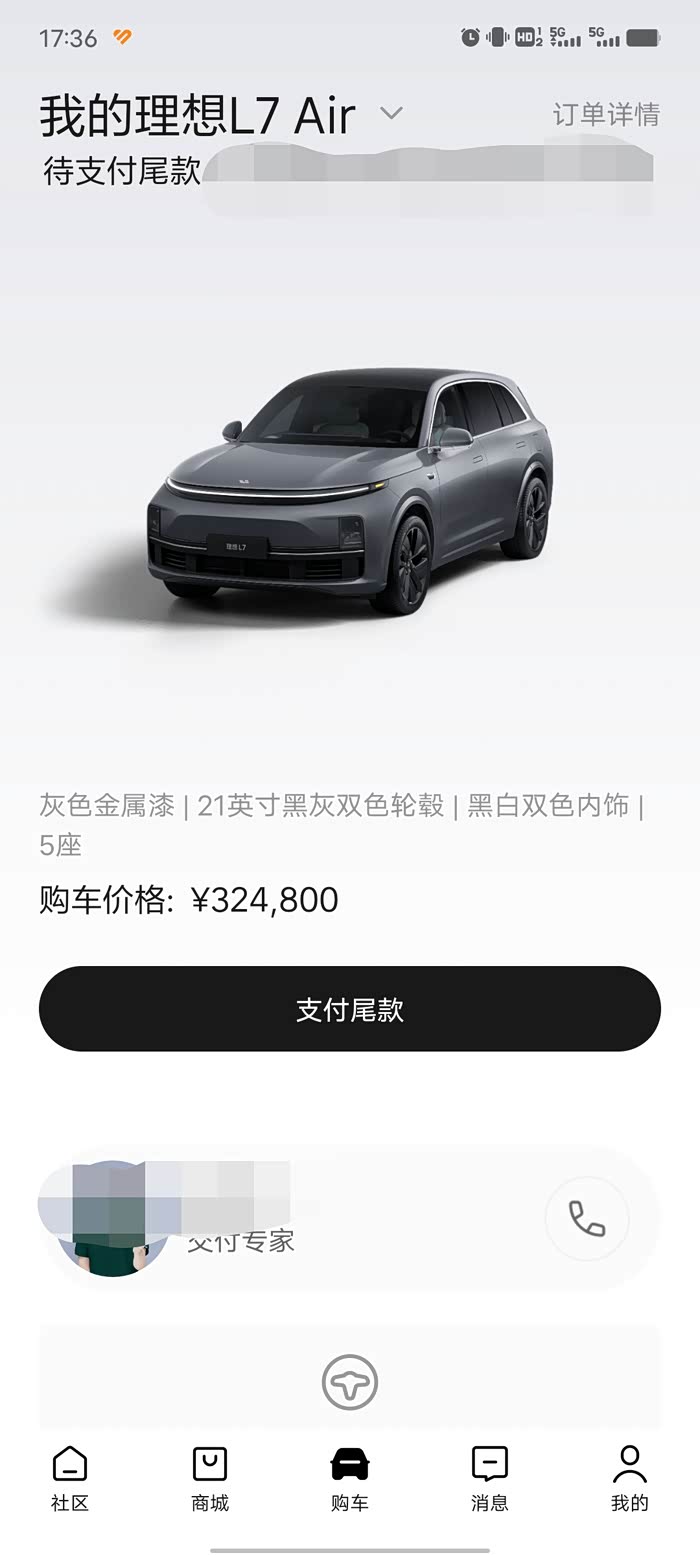 南京地区理想l7air灰外白内21寸轮毂,现车转单,包含5000选配基金优惠。因资金原因,忍痛亏2k转单,可协调交付专家异地提车。
