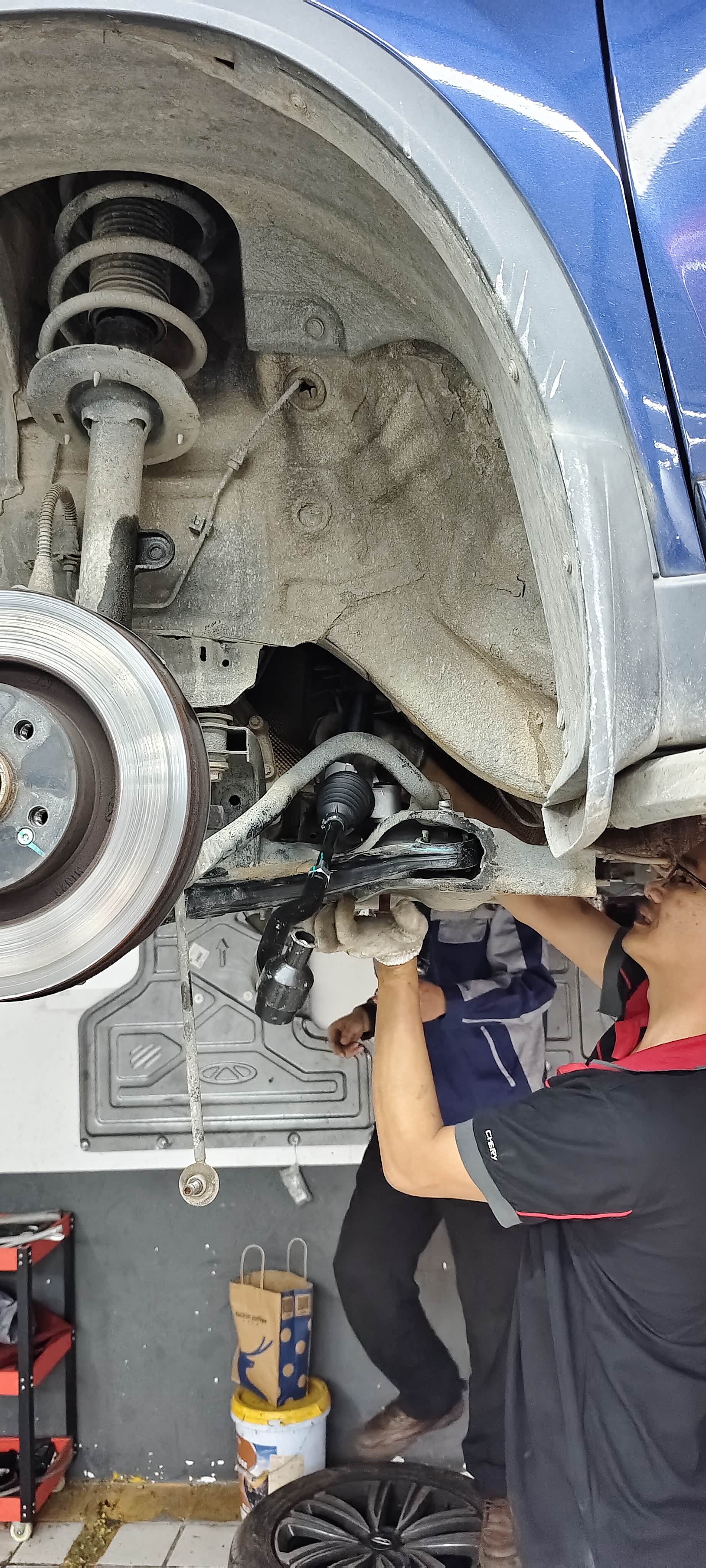试驾几圈回来后,慢慢的调试轮胎,把它纠正,师傅说里面球头那里有一颗螺丝,是纠正轮胎的,还是奇瑞售后的师傅比较专业,对自己的品牌了如指掌