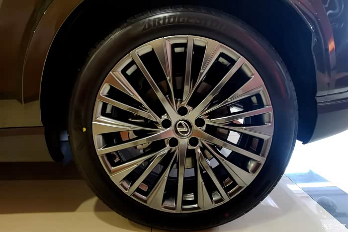 新一代的雷克萨斯RX提供了7中不同的轮毂样式,除了350h的两款两驱版车型配的是19英寸车圈以外,其他四款车型均为21英寸轮毂。这款枪灰色的密幅式看着很有质感,兼顾了运动与豪华的视觉感受。这台450h+的轮胎采用了普利司通遨然者ALENZA 001轮胎,一般都装备在高端多用途SUV车型上,采用的nanopro-Tech技术,有着出色的耐磨性和公路湿地性能,在静音性方面也有不俗的性能。轮胎的尺寸为235/50R21,不足之处是胎宽有些小。