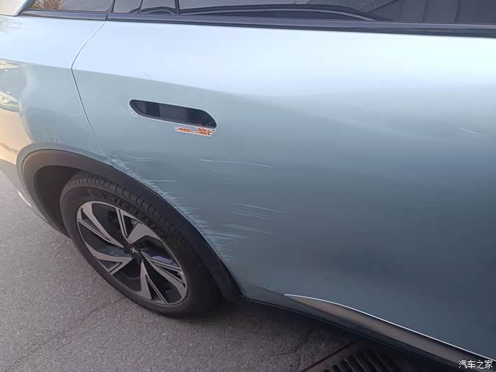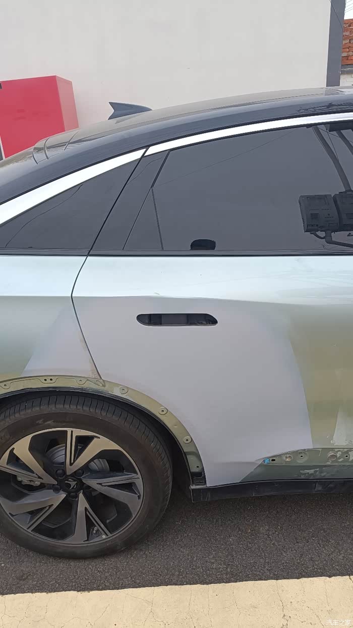 一、周末回家换煤气罐,😱煤气站真等于霉气站!煤气罐挺沉的就想把车开进站里,极狐这车还有360°影像,右拐一下就进去了,结果悲剧了,右后门连同把手都被大门刮掉了,如图所示,新车一
