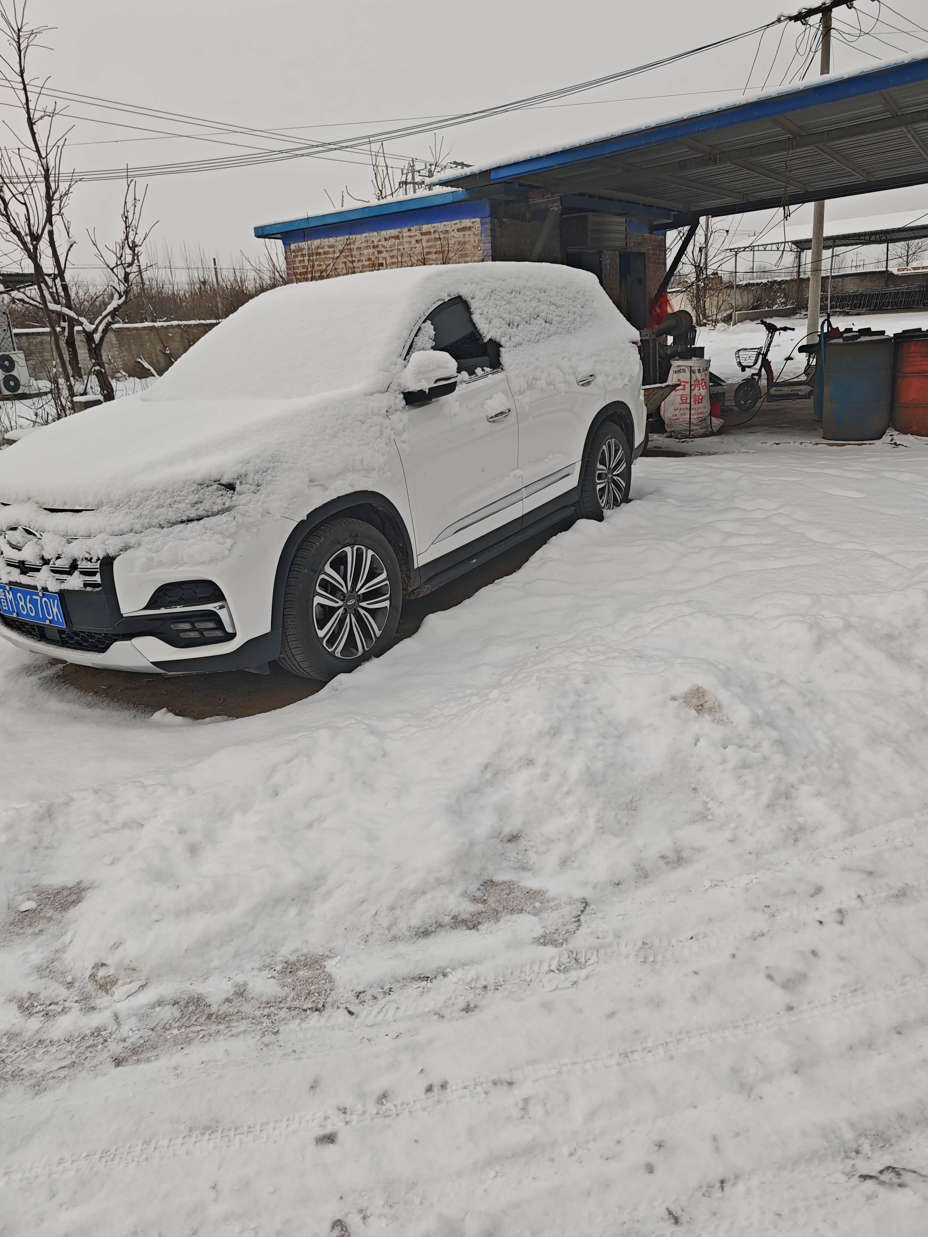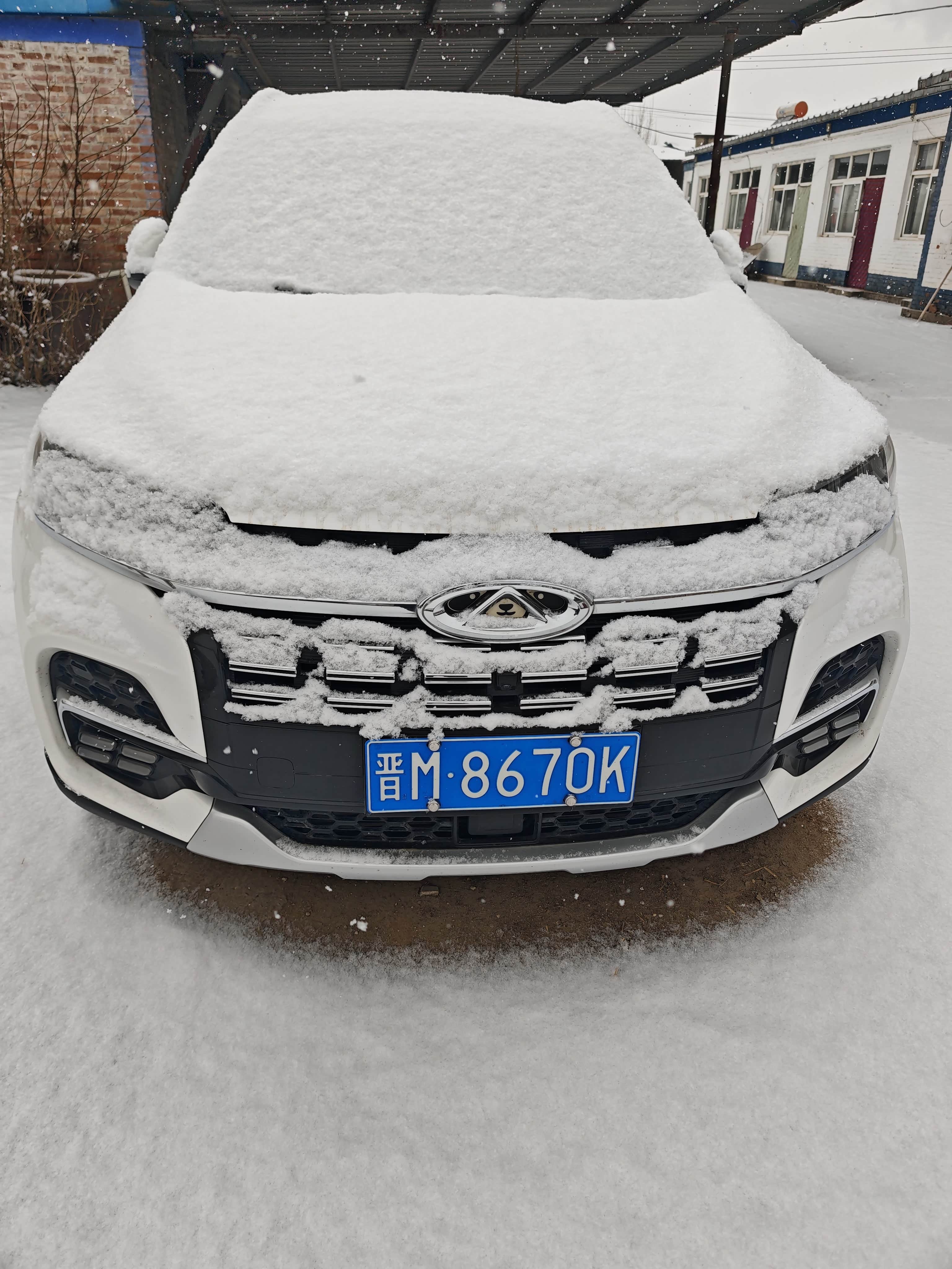 清晨推开院门,雪粒正簌簌地往下落,我的19款瑞虎8已经成了个“大白团子”。引擎盖上的积雪厚得能写字,车标里那只被我贴了卡通狗头的小老虎,只露出半只眼睛,在雪地里显得又萌又倔强。这是它陪我走过的第五个冬天了。