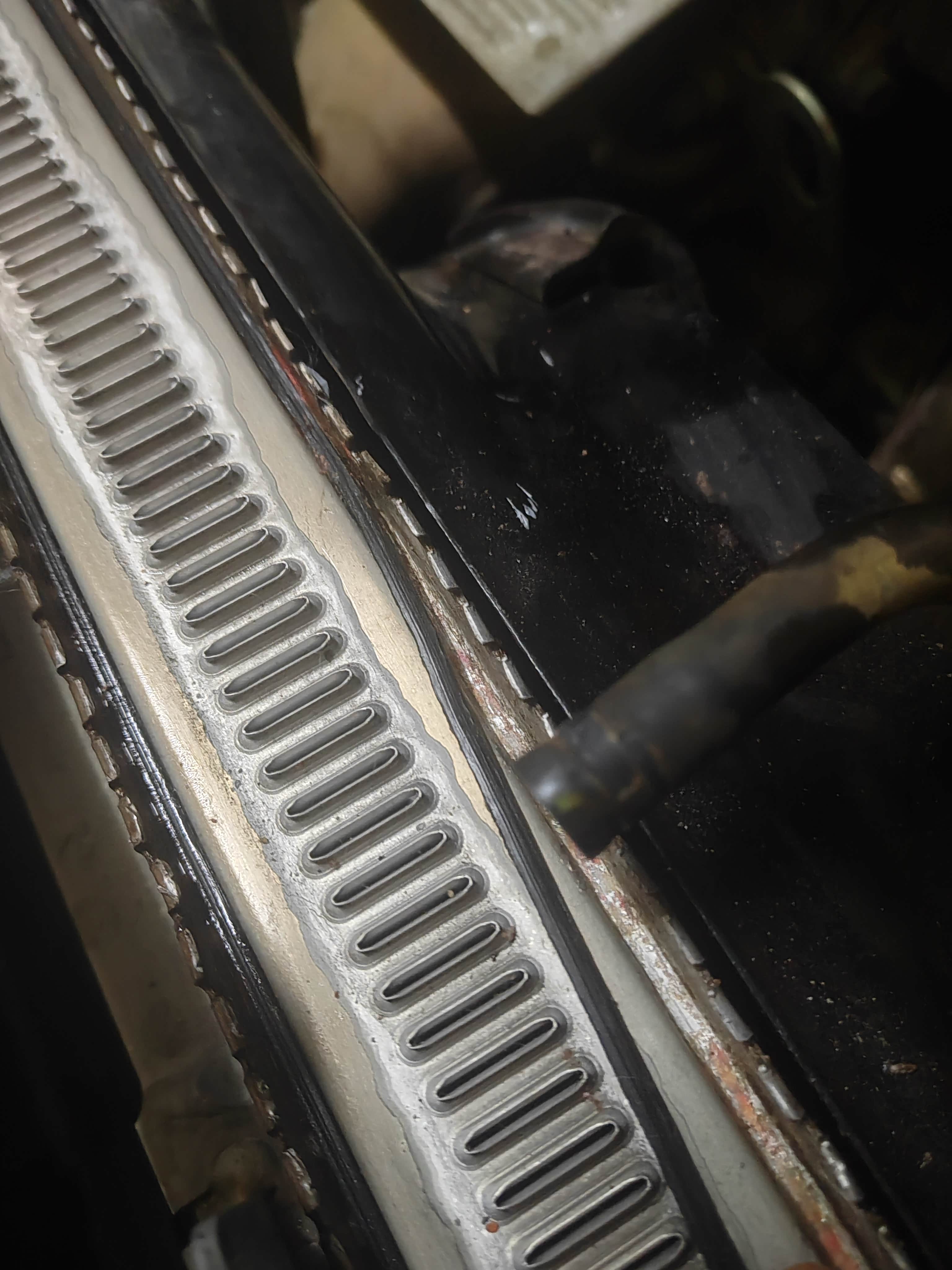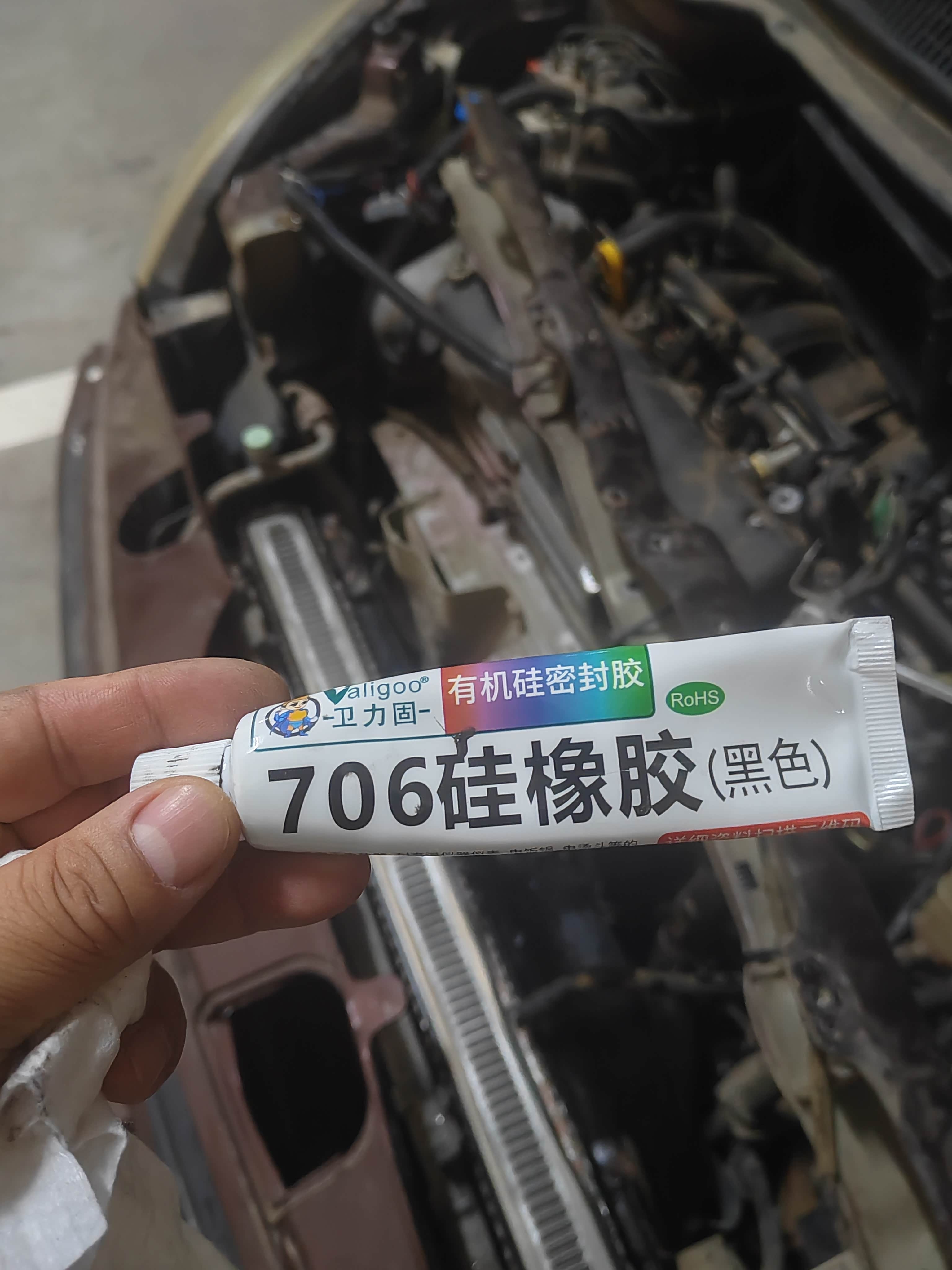 开始还以为是塑料箱坏了,最后拆开后发现是胶条有一块脱胶了了,就在上水管下边那块,那块卡扣原车没压,用的这个胶在里边打了一圈,也不知道能不能行,水箱没抬下来,直接在车上操作的,锤子都用上了,三天后见分晓,不行就换总成