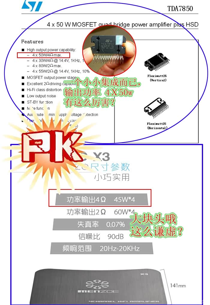 有点纳闷:相对TDA7850而言,这也算大家伙吧,自称45W×4。怎么这么谦虚?