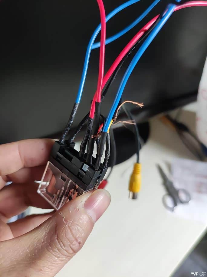 右视的开关我用3M胶粘在这个位置,按开关还是非常方便,懒得还要去开孔,电源是在点烟器的DC接口上接