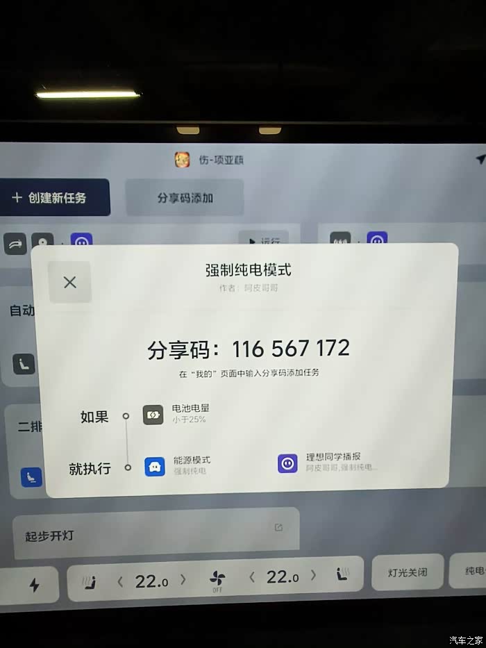 2.强制纯电。以前要开启强制纯电,只能通过语音或者手动开启,现在可以通过任务大师设置电量在一定比例(我设了25%)以下就自动开启,方便,省心