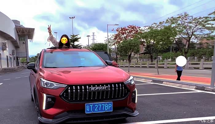 先跟我心爱的兔子拍个照,由于角度问题,只能看到我的肩膀在车子外面,实际上半个身子都是可以伸出来的哦,本人身高165,我是站在副驾驶座位上把身子伸出天窗的,大家可以看到这个高度,这说明赤兔在纵向的高度上是很足够的。