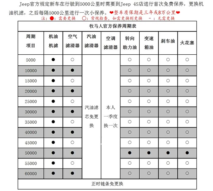 现在全国的4S一般都用上白瓶mopar的全合成机油。大家保养周期可以延长至8000-10000公里。