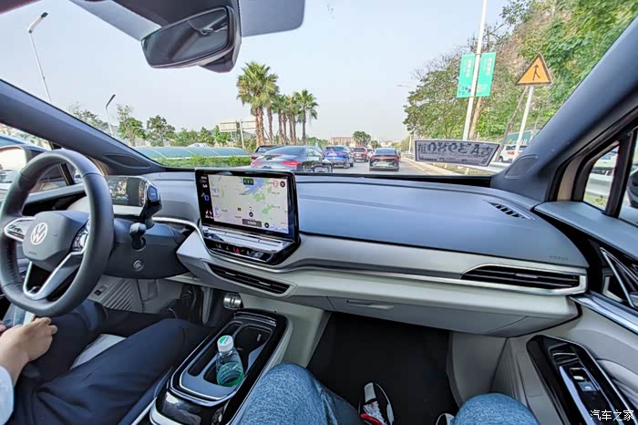 初到深圳,我便迎来了ID.4CROZZ的接机,这正是感受ID.4 CROZZ动态表现的好机会。打开车门,确实是新的ID——一改以往大众较为复杂的设计语言,有着智能电动车的“去实体按键”化的清爽设计,但是又保留了诸如一键启动,屏幕开关的触摸按键,简约而不简陋。
