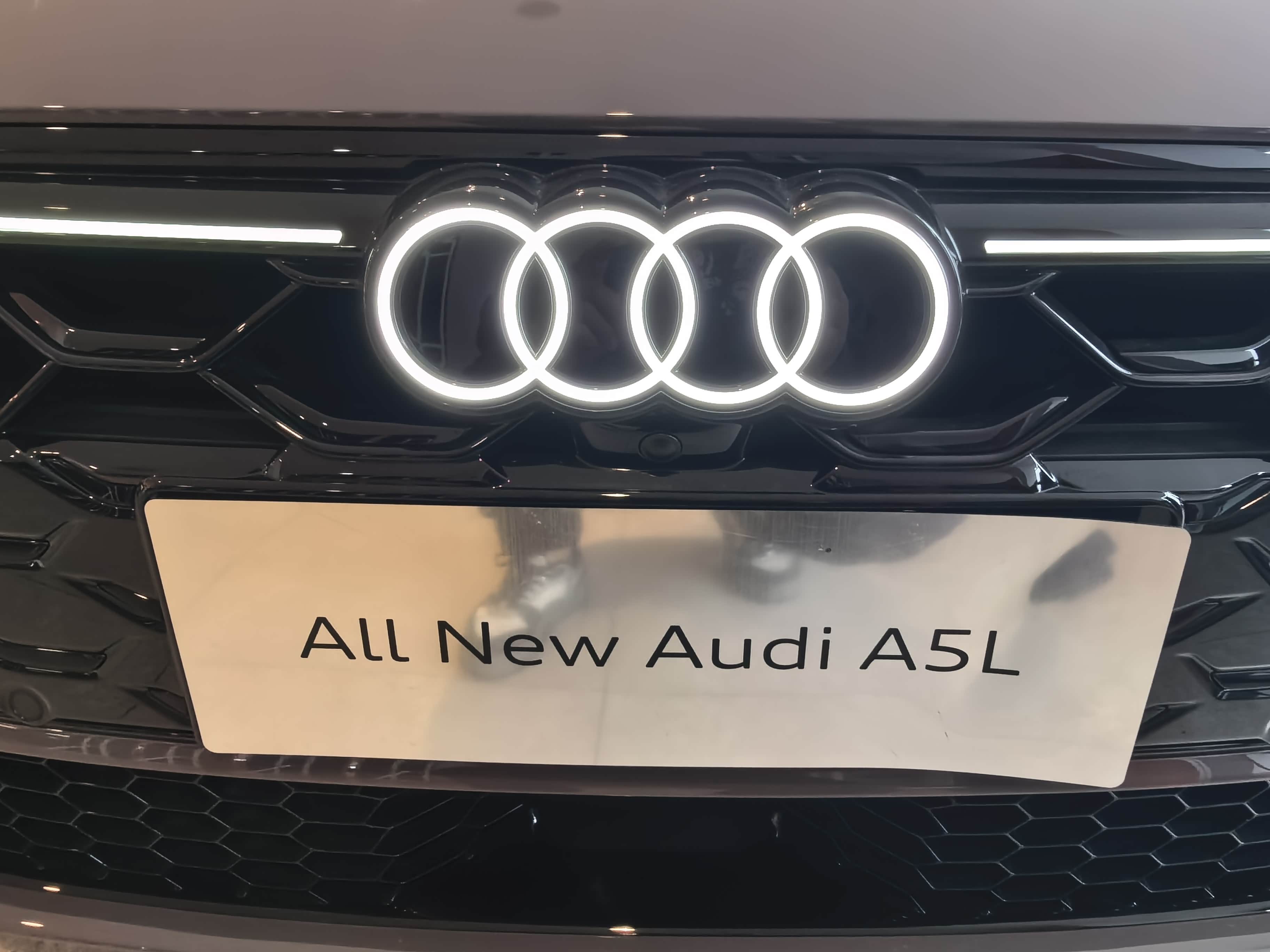 外观方面一汽奥迪A5L真的把奥迪灯厂的优势发挥到了极致。前脸的六边形网状格栅里藏着发光奥迪LOGO,周围的灯带和星辰矩阵大灯连为一体。解锁时的动态效果真的很好看。特别是在夜晚,绝对是非常亮眼的。前包围的运动套件线条犀利,底部的空气动力学设计不仅好看,还能降低风阻。