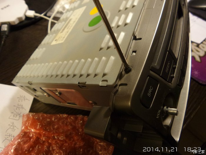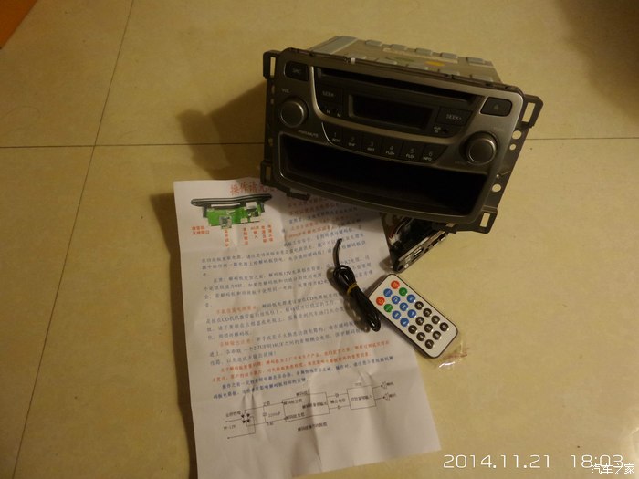 整天为车里听音乐烦恼,手机可以放音乐,但必须用音频线连接,而且打电话不方便。便携式MP3也行,但是要充电,而且还要打开电源,下车关闭电源。刻CD车里光盘丢的到处都是,而且汽车之家的原创视频里茜茜也建议说不安全,改导航代价太大……算来算去,还是加一个解码板实在,但考验的是动手能力,还好论坛上比我动手能力强很多的车友有很多,类似的改装作业也不少,这样,我也就少很多的弯路。在这里也就不一一点名致谢了!因此,我也就不打算充分和别人类似的改装作业了,主要从拆机改装机头开始了。因为是一个人,所以照片不可能很详尽,还请谅解。废话不多说了,上图吧: