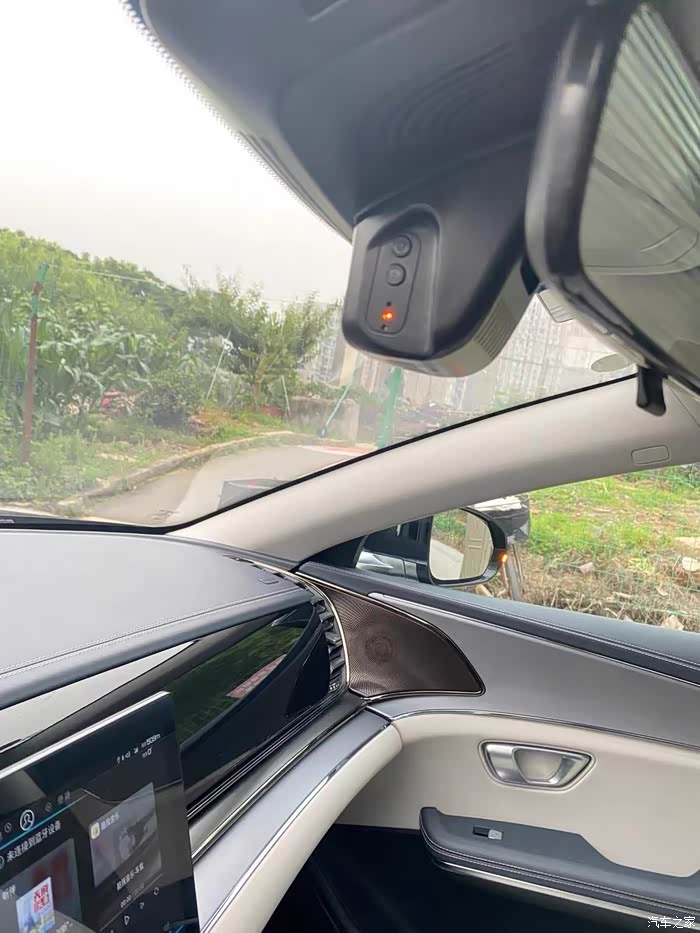 直接附上安装好的效果,主机贴上就行了,不影响原车自带的记录仪。这个也不影响三电质保,相对来讲比原车的效果好很多。三四百左右也不贵