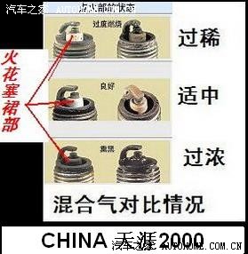 咱们针对电喷发动机,点火是ECU控制,暂不说点火时间问题,点火时间一般不会出现问题,按DIY的情况下检查(没解码器等设备),先说混合比浓,应测试点火强度是否在正常范围内,点火强度不够会导致混合气燃烧不完全。点火强度好的测试时不但能看到强烈的火花还能听到火花塞“啪啪”的跳火声,强度不够,检查点火高压线电阻是否正常,火花塞是否良好,这个很简单,哪只火花塞燃烧不好的话可以和其他缸的调换试车,再看来判断是高压线还是火花塞了。如果4只火花塞燃烧一致,火花强度正常但燃烧发黑,请看下文