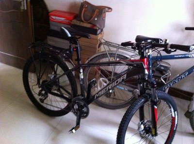 到14年春季到来,那颗买自行车的心又蠢蠢欲动,但是苦于没有闲散的钱,所以又放弃了(我想说,水瓶座,真的有选择恐惧症)。直到8月份,晚上看见越来越多的人在外夜骑,再也按捺不住买车的心了,去店里转了转,2498元,比官网报价多了100元,砍价,老板怎么都不松口,然后第一次买自行车,也没啥经验,不知道要啥,就知道鞍包,尾灯,手套,魔术头巾,最后死磨烂磨的要了个安全帽,挡泥瓦啊,货架也觉得不好看按上,傻的也没要,后悔啊