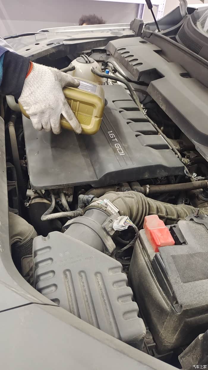 用了一大桶原厂机油,又填了一瓶小的,由于是正常保养,所以保养的比较快,又检查了胎压和石子。