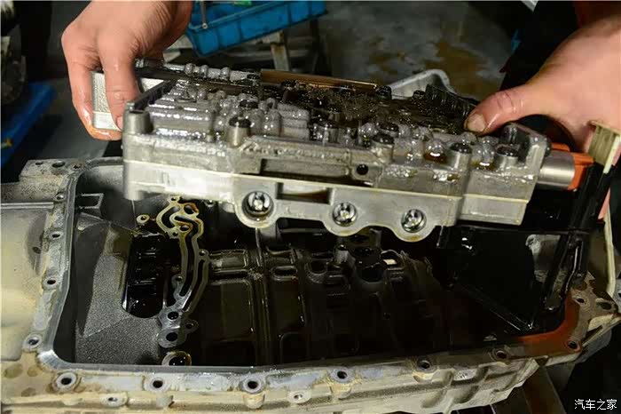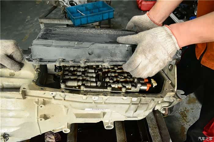 维修经过:车来到店里,检测结果为自动变速箱故障。又经我们专业的自动变速箱维修技师试车检测,发现此车起步时冲,在行驶中顿挫严重,故障灯提示变速箱故障,并且有锁挡现象。用专业的汽修电脑进行读码,显示传动比监视不良,确定电液故障后对变速箱拆卸维修。