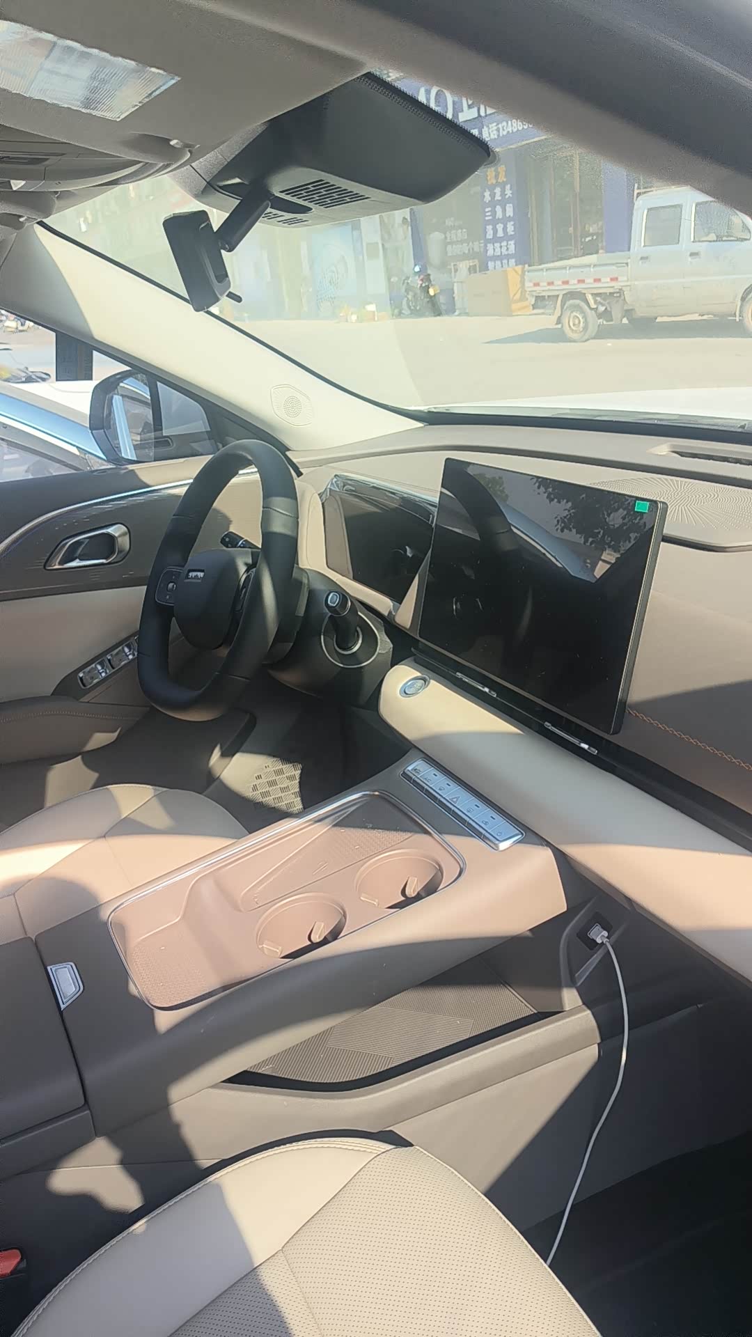 再说说车里的怀挡设计,这是我用着最顺手的地方。刚开始我对怀挡还有点抵触,觉得没有挂挡杆手没地儿放。但这一个月开下来适应了之后感觉还挺香的,没有了档把中控台那一块的空间就被完全利用了起来,无线充电用着就顺手了,而且也腾出来不少放东西的地方,平常媳妇上车那些随身带的小东西就可以仍在上面很方便。现在坐进驾驶位,看着宽敞的中控台,感觉整个前排的横向空间都变大了不少,开车的心情都变好了。