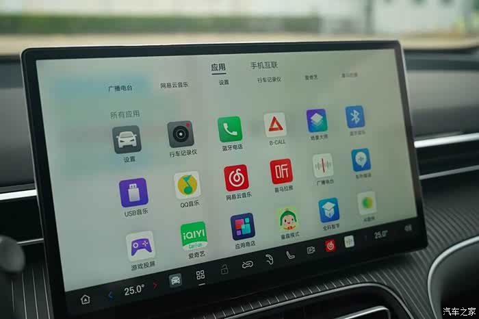 坐进车就瞅见大屏,现在新车都少不了这配置,意料之中。i60的车机系统有手机互联功能,但是我没用过,车机系统自带的功能就够多了,应用列表里网易云、爱奇艺甚至游戏投屏都有,讲真,现在的新车把系统做好已经是基本线了。i60的这个系统优点挺明显,就是流畅、操作简单,功能页面很清楚,不过这里面很多功能我都没咋用,就是导航、音乐用得比较多点。