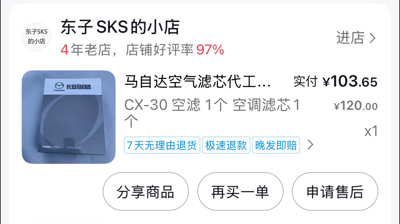 以上就是两个滤芯的更换步骤,两款滤芯的更换都不复杂,动手能力强的车主完全可以自己操作,能省下不少工时费。在网上购买滤芯时,可以直接搜索“马自达CX-30 空调滤芯/空气滤芯”,会有适配的型号,价格通常比4S店更实惠。以上就是我本次保养的所有内容,欢迎各位车友交流指导!