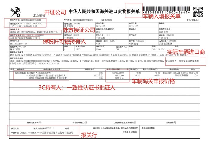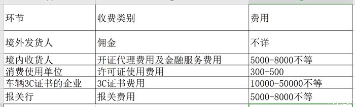 环节成本:之前我们讲过关于一台牧马人的进口流程——找一个境外发货人确定有车——找境内收货人负责开证,找一家具有平行进口试点资质的消费使用单位负责批平行进口许可证——找一家获得该车辆3C证书的企业获得一致性认证书及环保清单——找一家报关行进行报关;这样,一台加版牧马人就进口到国内了;