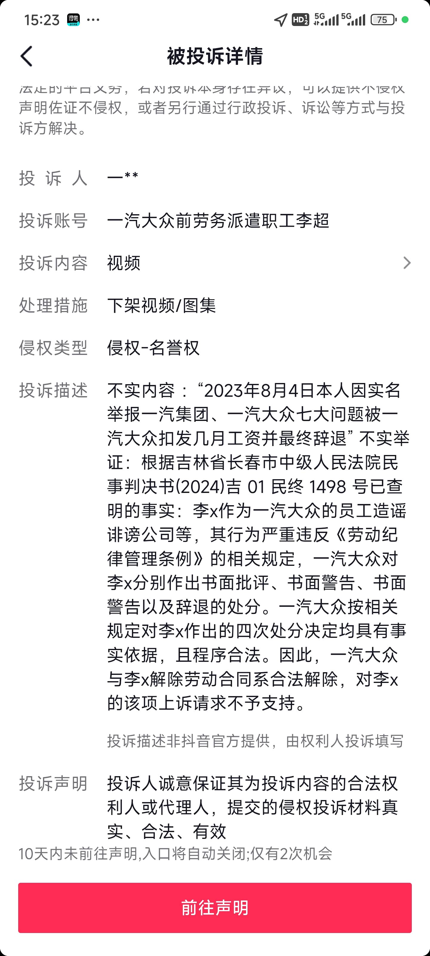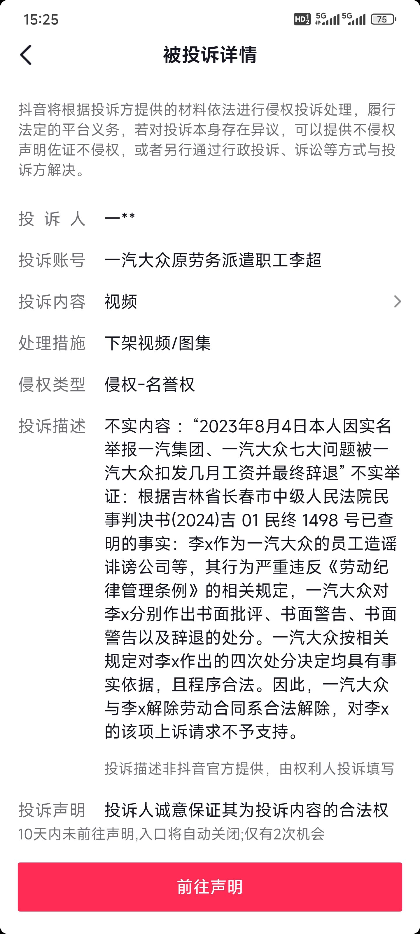 大家好我是一汽大众前劳务派遣职工李超,从这次被一汽大众举报内容说本人的该项上诉请求不予支持: