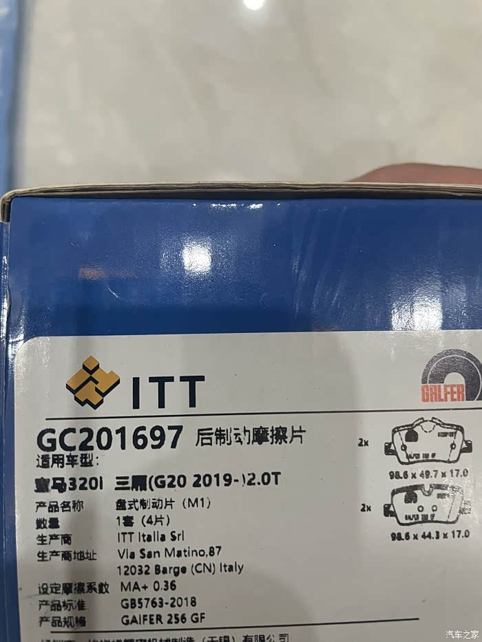 自己在网上查了一些信息,宝马原厂的刹车片也是其他品牌工厂代工的,泰明顿,天合,噶尔法,很多刹车片大厂都是宝马代工厂。经过比对,选择了意大利的噶尔法,价格也比较合适。