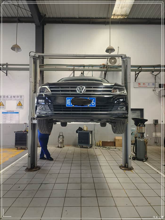 进店的目的很明确,进入车间后,先检查车辆底盘,上图为准备将车辆升起检查。