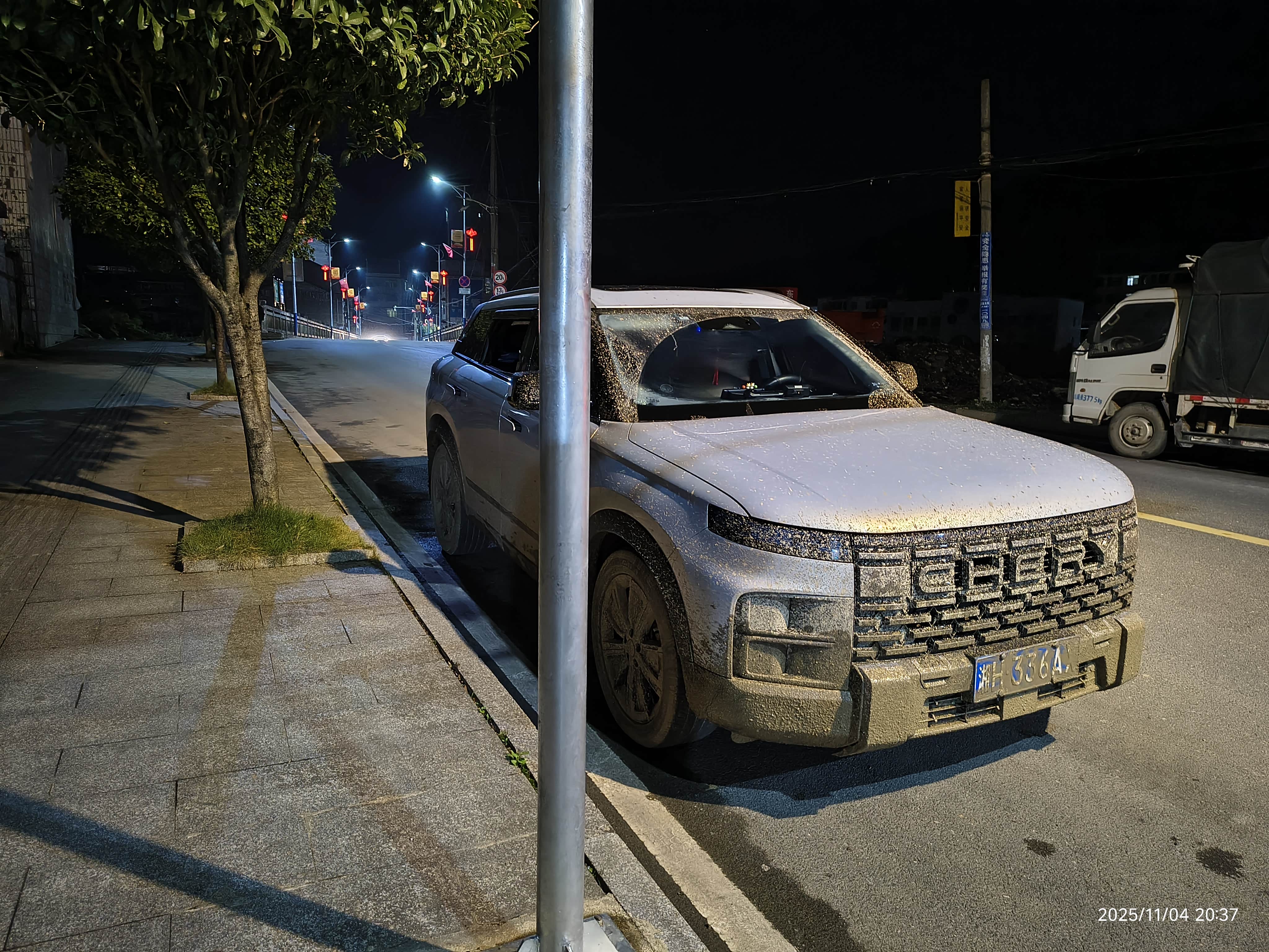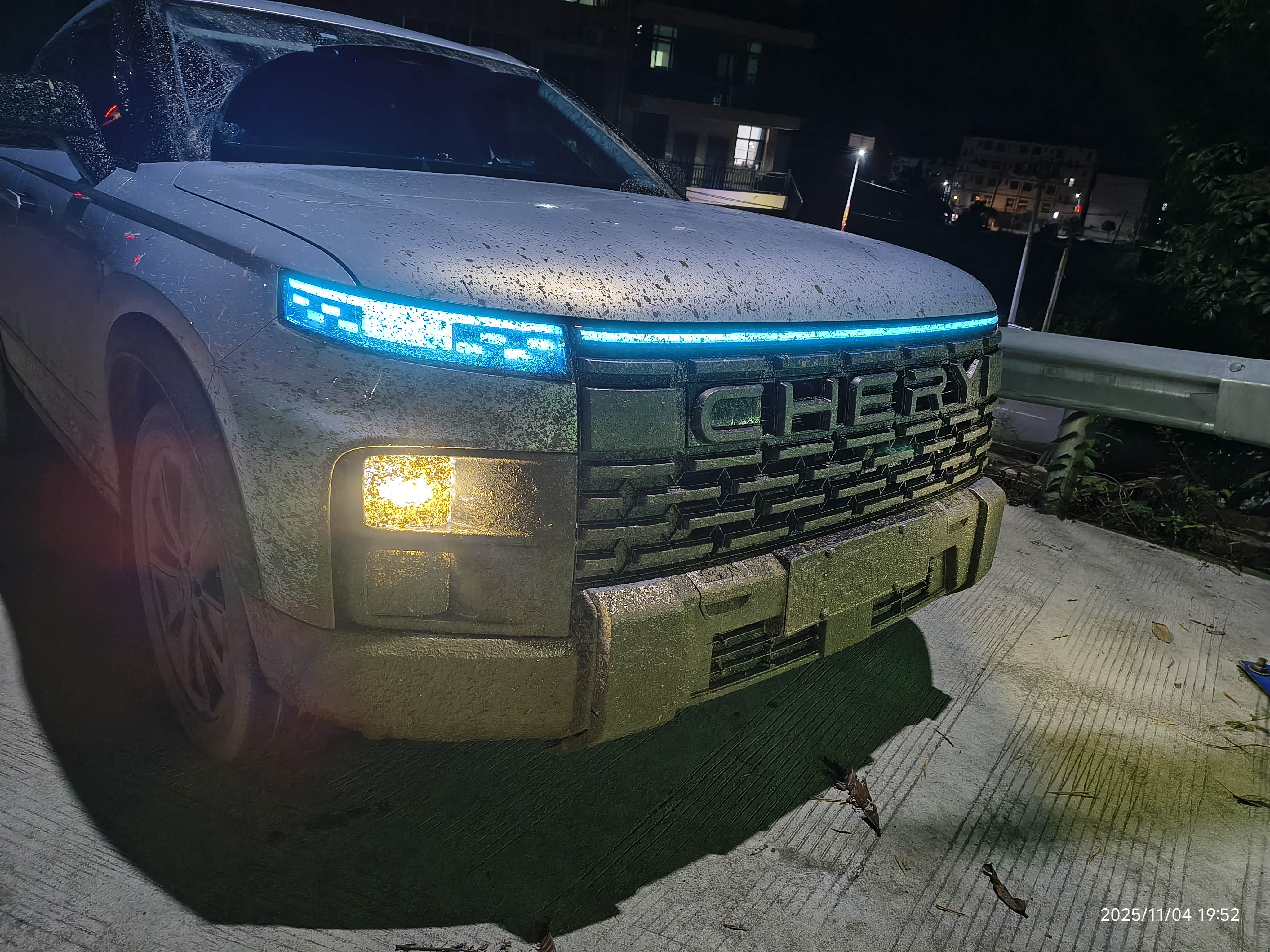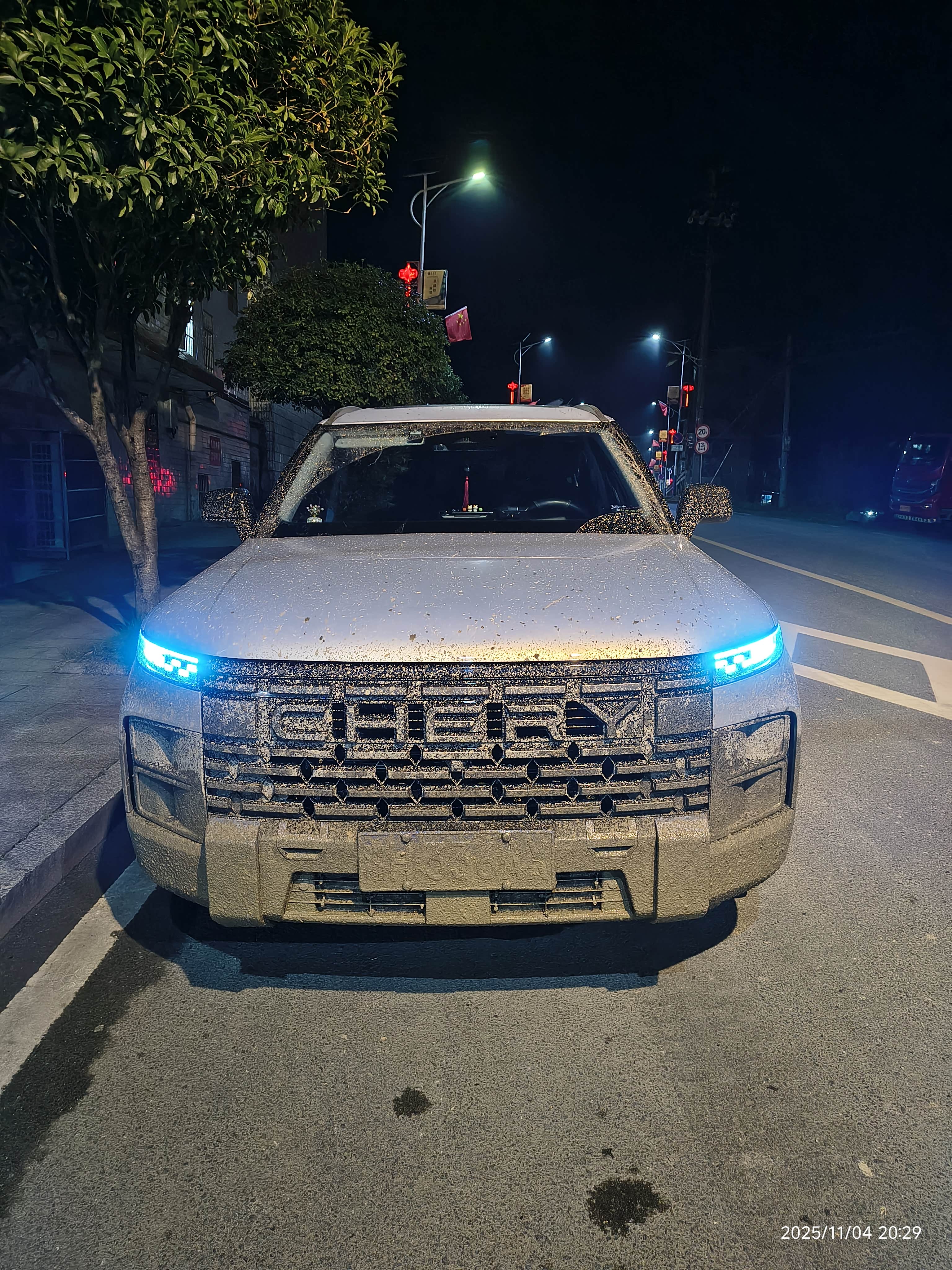 夜色笼罩的街角,一辆奇瑞探索06静默伫立,车头遍布的泥点与前格栅的“CHERY”标识形成鲜明对比——显然,它刚从一场酣畅的越野中归来。前脸粗犷的进气格栅搭配竖条形LED日行灯,硬派气质扑面而来,仿佛在宣告:这不仅是一台城市通勤工具,更是为探索而生的伙伴。