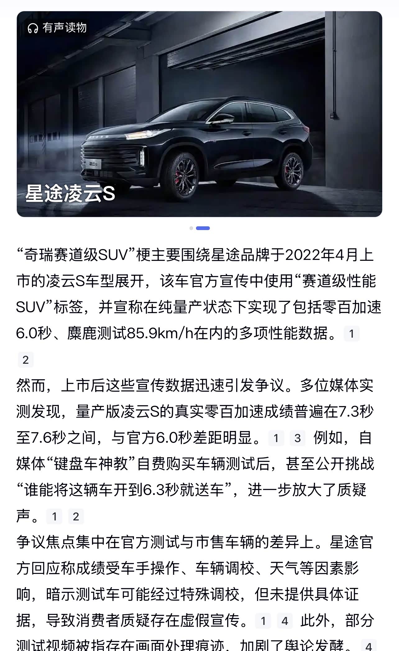 现在有自主品牌愿意参加全球赛事这是好事,毕竟不光验证了车企的技术,还能帮忙打造品牌。不过星途这事却不被广大网友看好,被群嘲为赛道级SUV,甚至还说特调造假。不过这也不怪网友,毕竟之前星途凌云S就宣传是赛道级性能SUV,结果后来媒体实测车型性能跟官方宣传差距过大,因此消费者质疑。