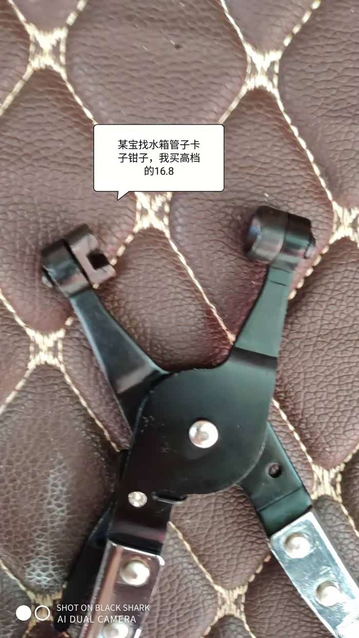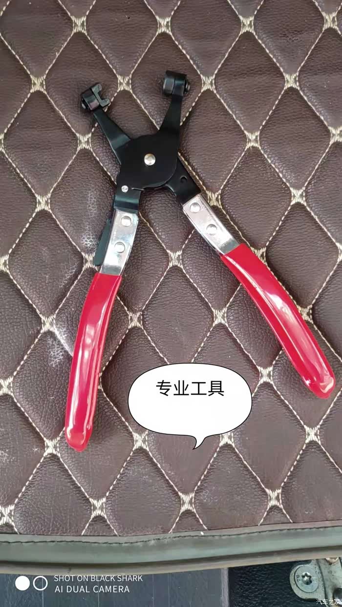 自己闲来无事在网上买了博士的-45℃的红色冷却液两瓶,一瓶四升,群里有人说要六升,就果断买了八升,看人家发的帖子说要专业工具,也没看啥工具,就拿了个钳子把电瓶左侧那个水管卡子去掉了,废了九牛二虎之力呀,然后把橡胶粗管接口拔开,哗哗啦啦流了一地水,把副水箱盖子扭下来,然后按住漏气口,往里面吹气,吹了二十多下,感觉不出水了,准备把管子安上去,谁知道,那个卡子劲挺大,一般的钳子不行,卸的时候就费劲,上去就更费劲啦,搞了二十多分钟还是没搞定,算了还是买了专业工具,郁闷了,还好第二天就到,拿过来五分钟完事,忘了管子扭开的照片,看图说话