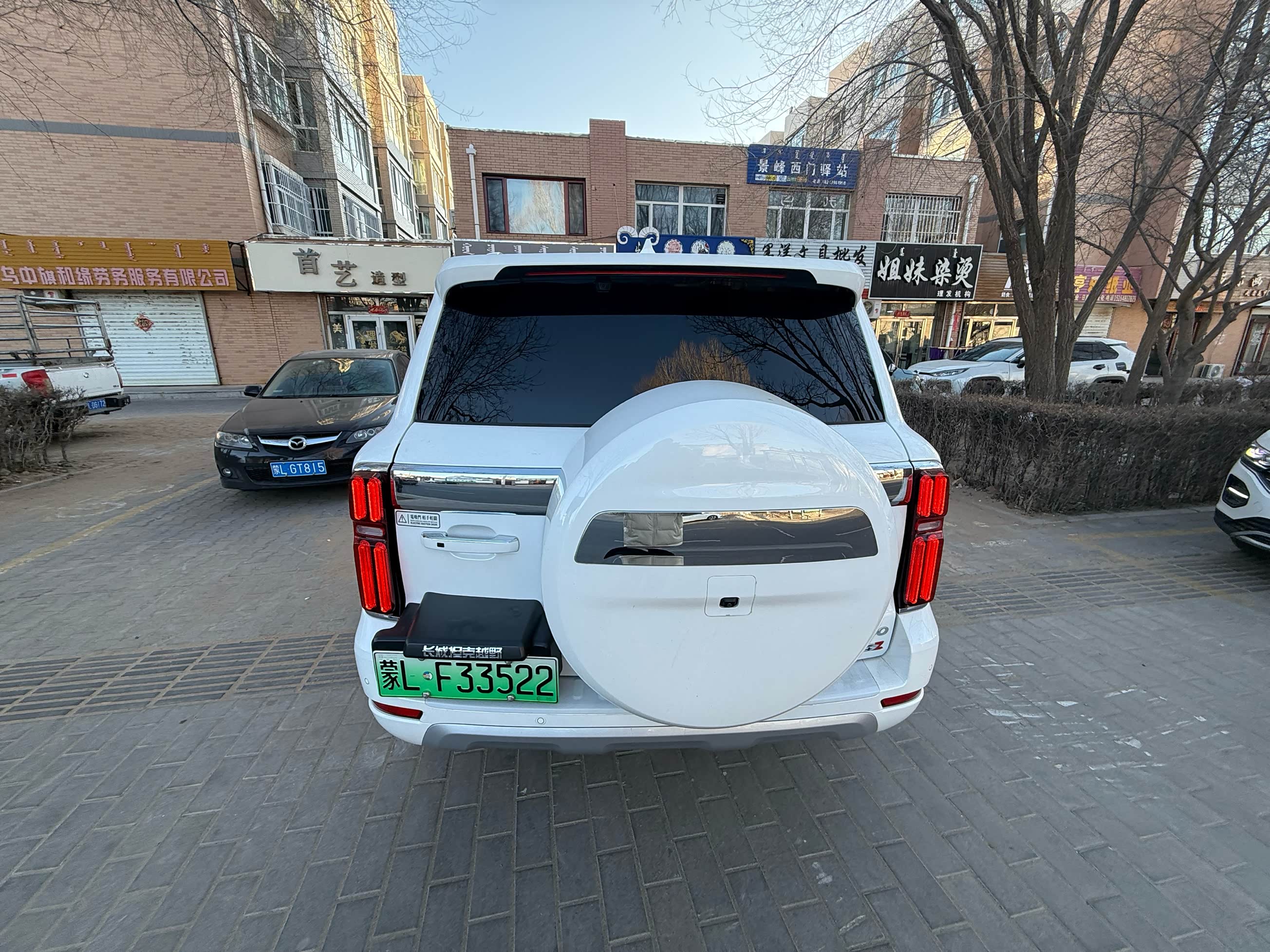 外观方面:经典越野的方盒子设计,无论怎么看都不过时。刚开始提车时我一直是比较中意黑色,但考虑黑色不耐脏过于老气,而恰好白色是珍珠漆不说提车还不加价,所以一想二考虑三决定最后选择白色车漆,精神帅气!