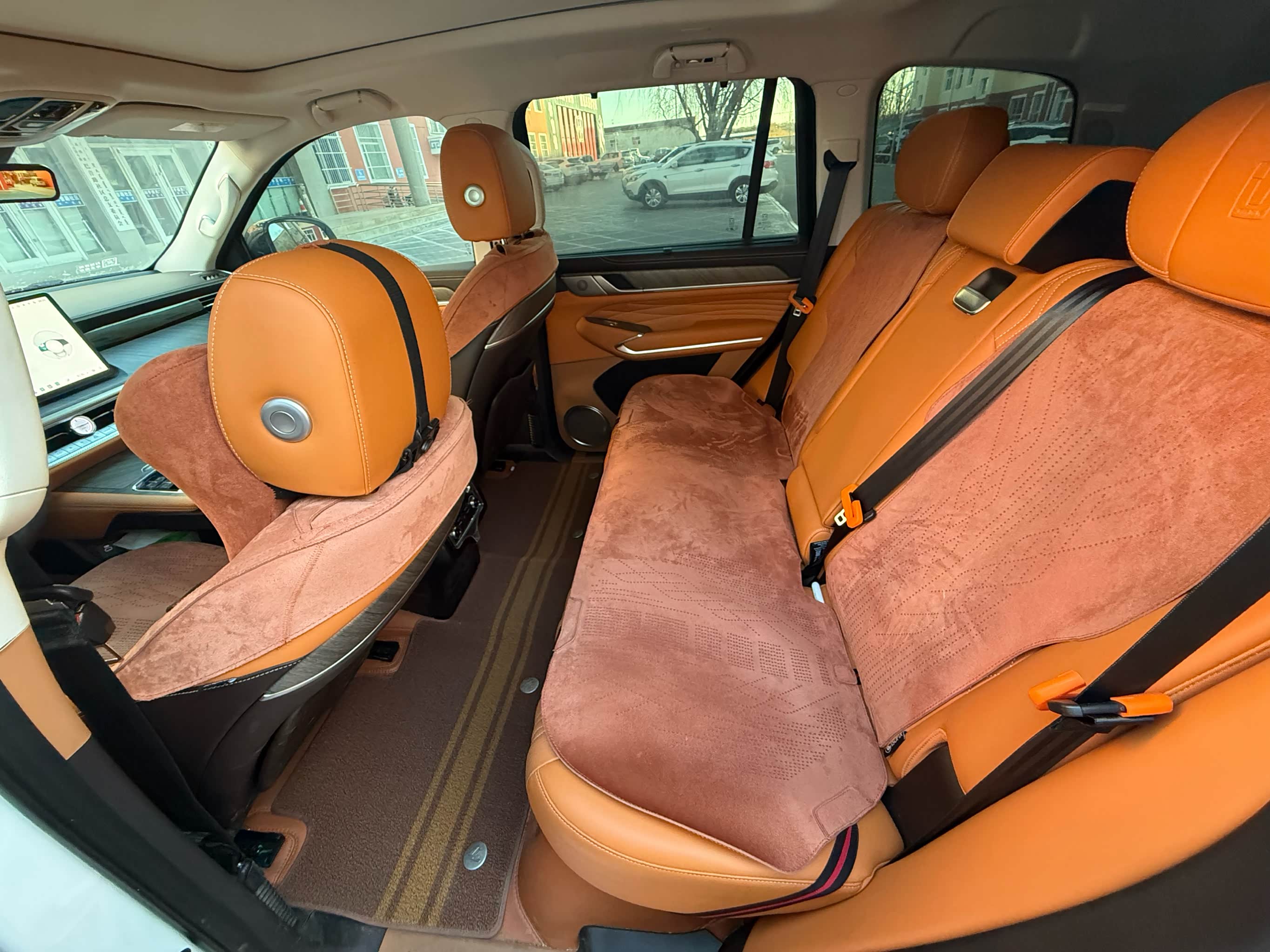 空间方面:超过五米的SUV车内空间自然够用。以我1.8米的身高以正常的坐姿坐在第二排双腿距离前排还有30厘米的距离,头部距离车顶也有20厘米的距离,即便是后排坐满三个人也不会有过多的拥挤感,坐着颇为松弛。