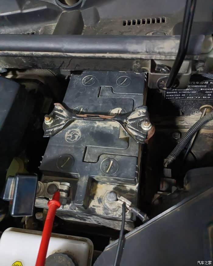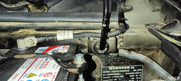 正极线因为电瓶加高有点不够长,将正级线在电瓶托板上的固定卡子取下,再把正极线卡子卡在电瓶边缘压一下,正极线就能拉上来一截,再在电瓶边缘垫上个东西,把正线卡子卡在上面再压一下,还能再拉上来一截,然后将电瓶向左边倾斜一下,将正极线卡子套在正极上,再将电瓶扶正。