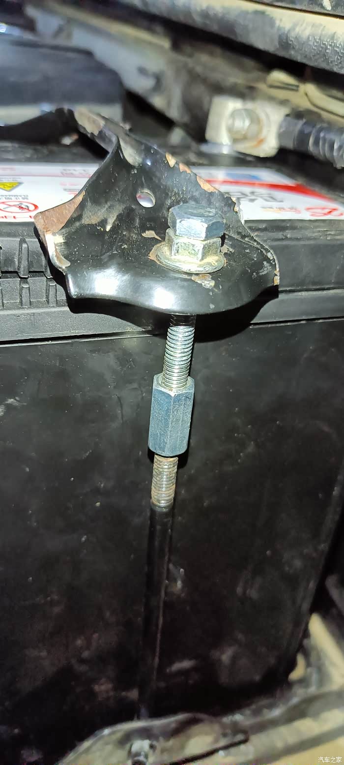 因为新电瓶高出3公分多点,会造成原有的固定拉杆不够长,所以需要使用连接母和螺栓将其延长。